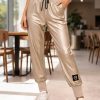 Stílusos, fekete női nadrág, amely a klasszikus szabást modern, nőies részletekkel ötvözi. A magas derekú kialakítás szépen kiemeli a derékvonalat, míg az egyenes szár elegáns és nyújtott sziluettet biztosít. Letisztult formájának köszönhetően tökéletes választás irodai viselethez vagy alkalmi, elegáns szettekhez.