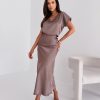 Letisztult luxus és kifinomult kényelem tökéletes harmóniában. A meleg barna árnyalat időtálló eleganciát sugároz, míg a lágy esésű anyag és a modern szabás exkluzív megjelenést biztosít. A rövid ujjú, lazán omló felsőrész és a magasított derekú, bő szárú nadrág együtt könnyed, mégis rendkívül stílusos sziluettet alkot.