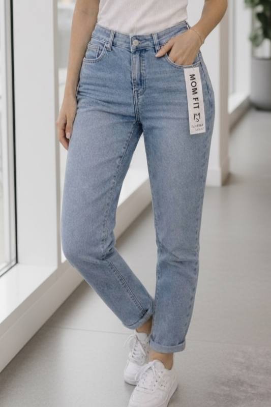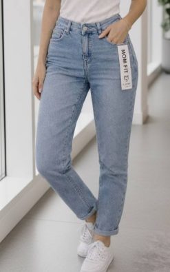 Stílusos és kényelmes női farmernadrág, amely a népszerű mom fit fazonnak köszönhetően divatos és időtálló választás. A klasszikus világoskék farmer szín könnyen kombinálható különböző felsőkkel, így tökéletes a hétköznapi és lazább elegáns szettekhez is.