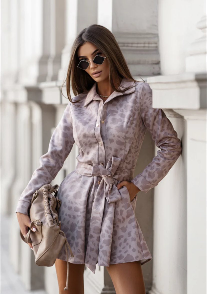 Stílusos és nőies választás a hétköznapokra és alkalmakra egyaránt. Ez a különleges mintás ingruha galléros kialakításával és végig gombos fazonjával elegáns, mégis könnyed megjelenést biztosít. A deréknál megköthető öv szépen kiemeli az alakot, miközben játékos, modern sziluettet teremt.