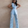 Ez a púderrózsaszín női szett tökéletes választás, ha a kényelmet romantikus, elegáns stílussal szeretnéd ötvözni. A felső különleges fodros díszítése igazán nőies és látványos megjelenést ad, míg a laza szabás kényelmes viseletet biztosít egész nap. A hozzá illő, bő szárú nadrág könnyed esésével kifinomult összhatást teremt. Ideális választás alkalmakra, elegáns hétköznapokra vagy csinos, mégis komfortos szettekhez.